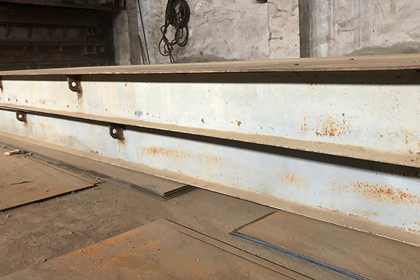 (2)折彎機的大小決定了“U”型鋼的厚度、高度,南京歐亞衡器制造有限公司的折彎機可以折5mm-14mm的鋼板,主梁最高可達360mm,從而保證了秤體的整體強度。